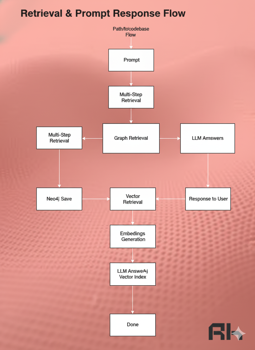 - RAG: The system queries its Neo4j database to retrieve the exact code snippets and relationship data relevant to the error.